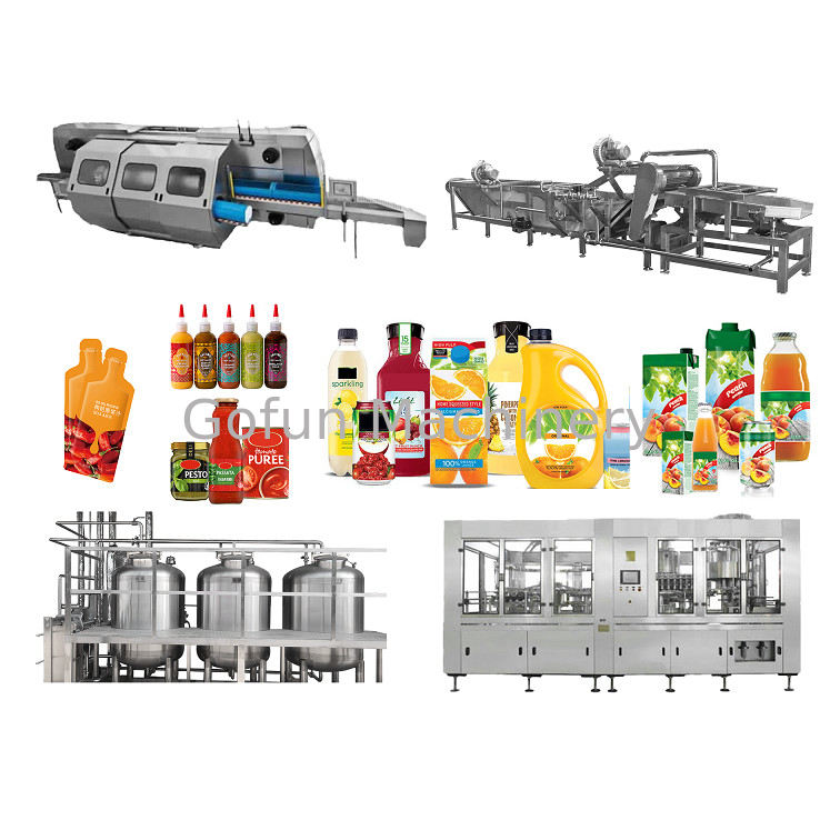 Η Γραμμή παραγωγής φρουτώδους ποτού από την Shanghai Gofun machinery company λειτουργεί με υψηλή απόδοση, εξοικονόμηση νερού, υψηλό ρυθμό εξαγωγής, ποιοτικό έλεγχο ασφαλείας για το τελικό προϊόν, έλεγχο ασφαλείας για τους χειριστές κ.λπ.Διάγραμμα ροής